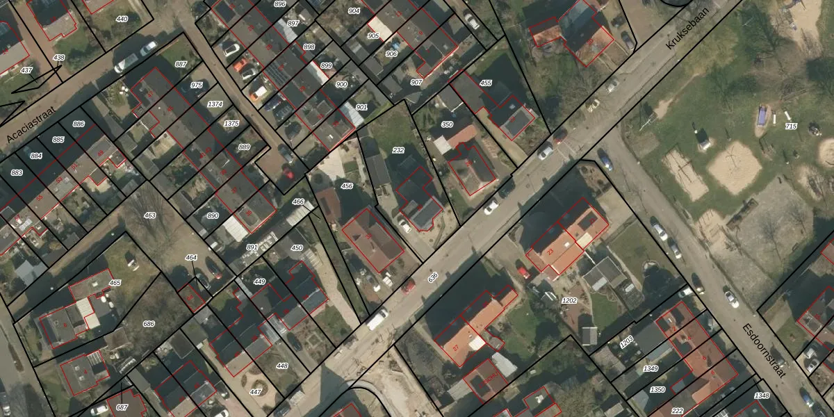 Het perceel waarop Kruksebaan 30 staat heeft een oppervlakte van 514 m². Dit is een groot perceel. De perceeloppervlakte wordt geregistreerd door het Kadaster. Gedetailleerde informatie over de maten van dit perceel kunt u vinden in het rapport Kadastrale kaart met maatvoering van Kruksebaan 30.