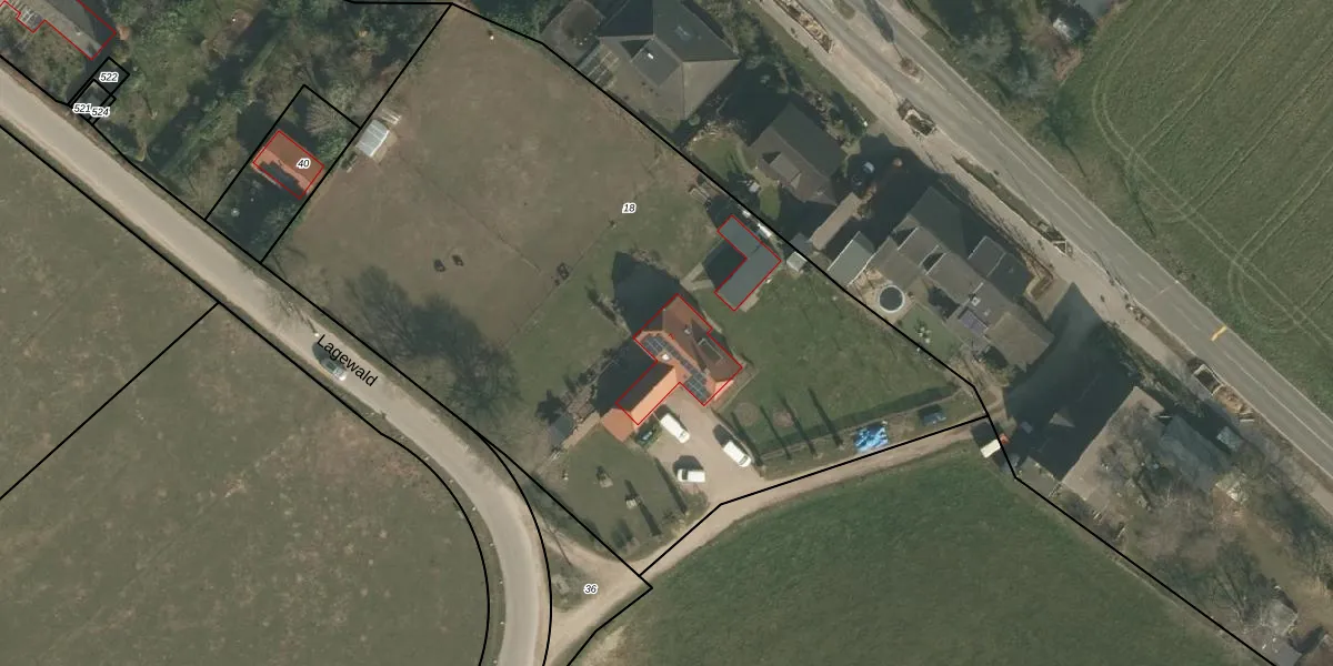 Lagewald 7 is gelegen op kadastraal perceel GBK00O18. Deze kadastrale aanduiding is uniek en wordt gebruikt door het Kadaster om eigendomsrechten en andere zakelijke rechten vast te leggen. Het perceel maakt onderdeel uit van de kadastrale gemeente Groesbeek.