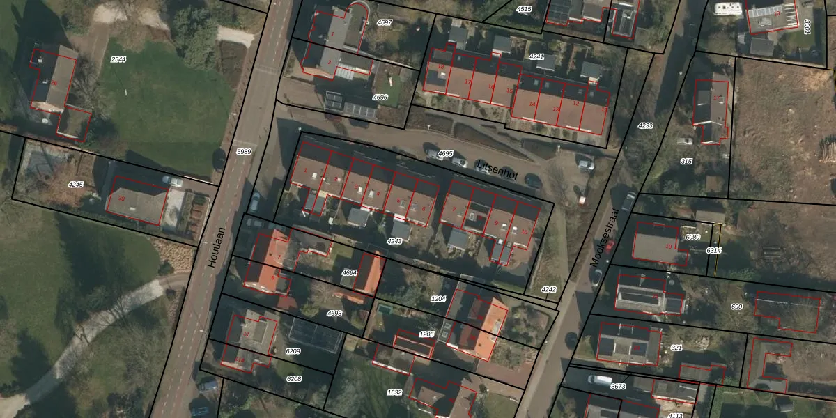 Het perceel waarop Litsenhof 6 staat heeft een oppervlakte van 1510 m². Dit is een zeer groot perceel. De perceeloppervlakte wordt geregistreerd door het Kadaster. Gedetailleerde informatie over de maten van dit perceel kunt u vinden in het rapport Kadastrale kaart met maatvoering van Litsenhof 6.