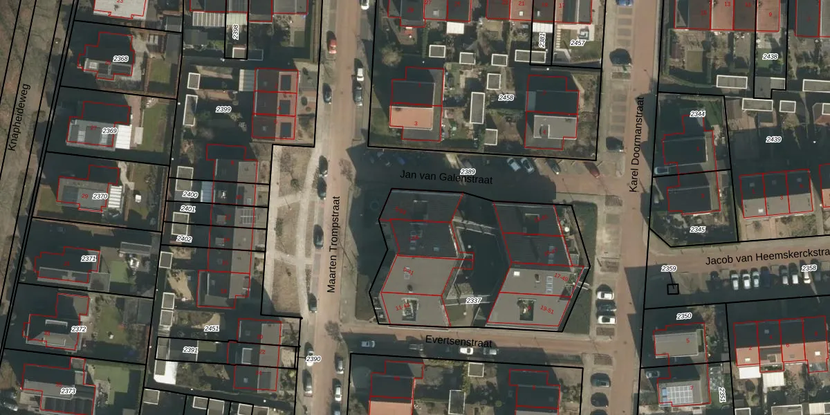Maarten Trompstraat 5 is gelegen op kadastraal perceel GBK00E2337. Deze kadastrale aanduiding is uniek en wordt gebruikt door het Kadaster om eigendomsrechten en andere zakelijke rechten vast te leggen. Het perceel maakt onderdeel uit van de kadastrale gemeente Groesbeek.