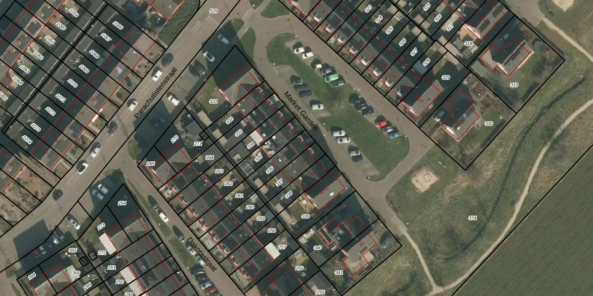 Het perceel waarop Market Garden 14 staat heeft een oppervlakte van 143 m². Dit is een middelgroot perceel. De perceeloppervlakte wordt geregistreerd door het Kadaster. Gedetailleerde informatie over de maten van dit perceel kunt u vinden in het rapport Kadastrale kaart met maatvoering van Market Garden 14.