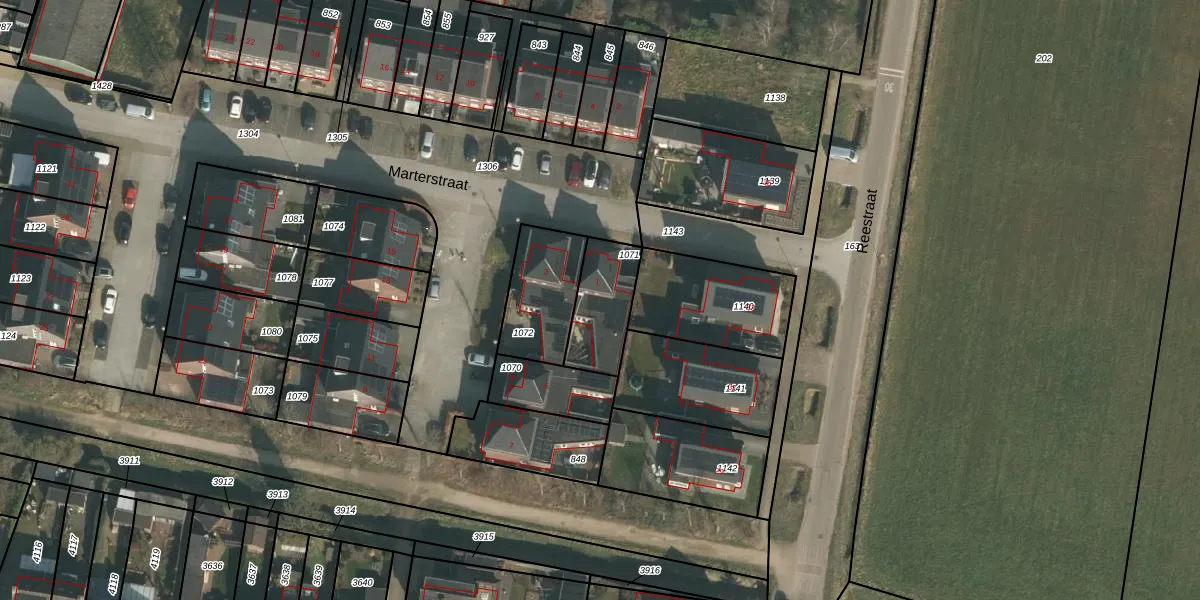 Het perceel waarop Marterstraat 1 staat heeft een oppervlakte van 204 m². Dit is een middelgroot perceel. De perceeloppervlakte wordt geregistreerd door het Kadaster. Gedetailleerde informatie over de maten van dit perceel kunt u vinden in het rapport Kadastrale kaart met maatvoering van Marterstraat 1.