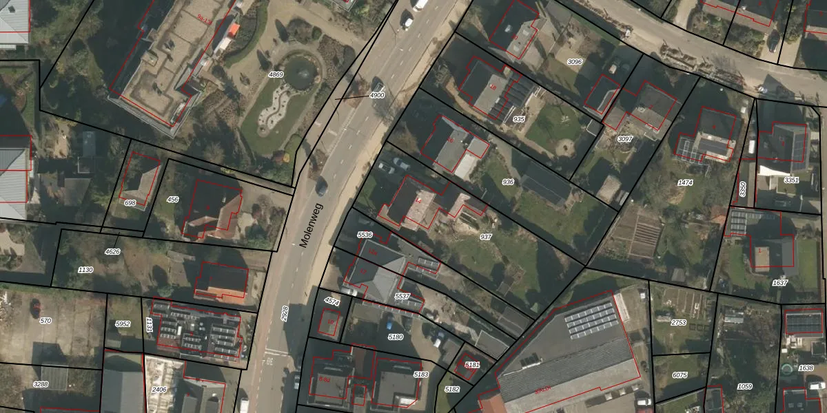 Molenweg 14 is gelegen op kadastraal perceel GBK00L937. Deze kadastrale aanduiding is uniek en wordt gebruikt door het Kadaster om eigendomsrechten en andere zakelijke rechten vast te leggen. Het perceel maakt onderdeel uit van de kadastrale gemeente Groesbeek.