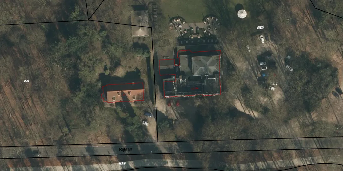 Het perceel waarop Mooksebaan 12-a staat heeft een oppervlakte van 1,6 ha. Dit is een zeer groot perceel. De perceeloppervlakte wordt geregistreerd door het Kadaster. Gedetailleerde informatie over de maten van dit perceel kunt u vinden in het rapport Kadastrale kaart met maatvoering van Mooksebaan 12-a.