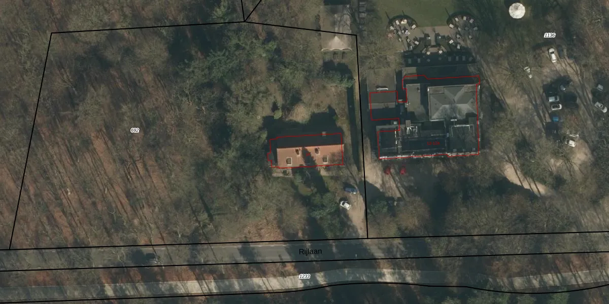 Het perceel waarop Mooksebaan 14 staat heeft een oppervlakte van 7715 m². Dit is een zeer groot perceel. De perceeloppervlakte wordt geregistreerd door het Kadaster. Gedetailleerde informatie over de maten van dit perceel kunt u vinden in het rapport Kadastrale kaart met maatvoering van Mooksebaan 14.