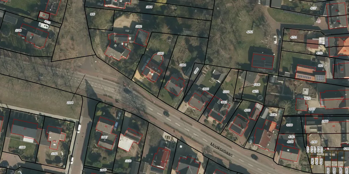 Het perceel waarop Mooksebaan 4-d staat heeft een oppervlakte van 642 m². Dit is een groot perceel. De perceeloppervlakte wordt geregistreerd door het Kadaster. Gedetailleerde informatie over de maten van dit perceel kunt u vinden in het rapport Kadastrale kaart met maatvoering van Mooksebaan 4-d.
