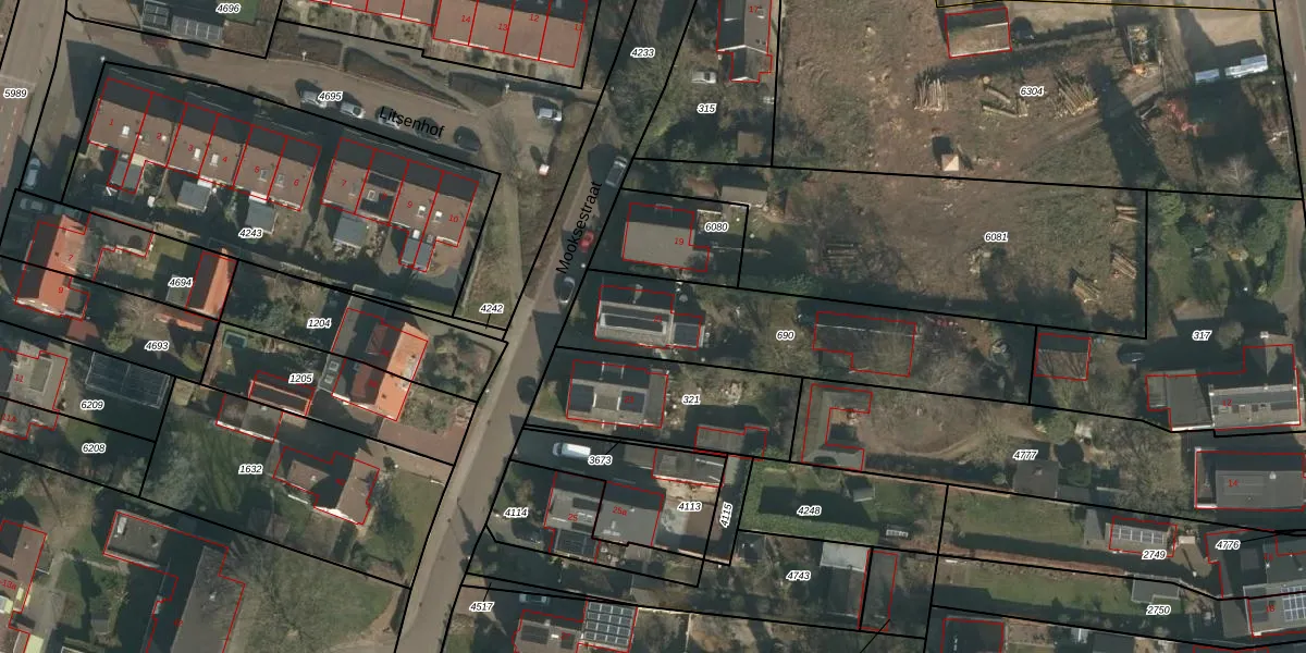 Het perceel waarop Mooksestraat 21 staat heeft een oppervlakte van 865 m². Dit is een groot perceel. De perceeloppervlakte wordt geregistreerd door het Kadaster. Gedetailleerde informatie over de maten van dit perceel kunt u vinden in het rapport Kadastrale kaart met maatvoering van Mooksestraat 21.