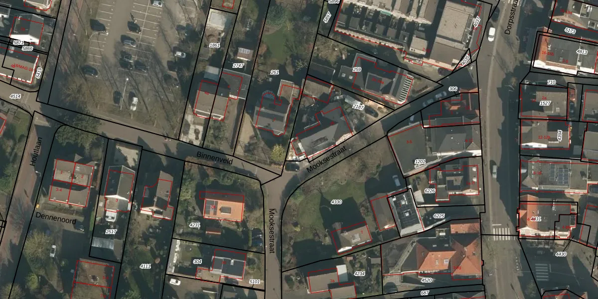 Mooksestraat 26-b is gelegen op kadastraal perceel GBK00L2187. Deze kadastrale aanduiding is uniek en wordt gebruikt door het Kadaster om eigendomsrechten en andere zakelijke rechten vast te leggen. Het perceel maakt onderdeel uit van de kadastrale gemeente Groesbeek.