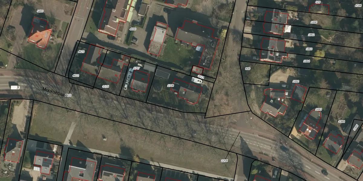 Mooksestraat 46 is gelegen op kadastraal perceel GBK00L1708. Deze kadastrale aanduiding is uniek en wordt gebruikt door het Kadaster om eigendomsrechten en andere zakelijke rechten vast te leggen. Het perceel maakt onderdeel uit van de kadastrale gemeente Groesbeek.