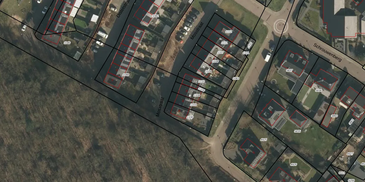Mosstraat 14 is gelegen op kadastraal perceel GBK00F1104. Deze kadastrale aanduiding is uniek en wordt gebruikt door het Kadaster om eigendomsrechten en andere zakelijke rechten vast te leggen. Het perceel maakt onderdeel uit van de kadastrale gemeente Groesbeek.