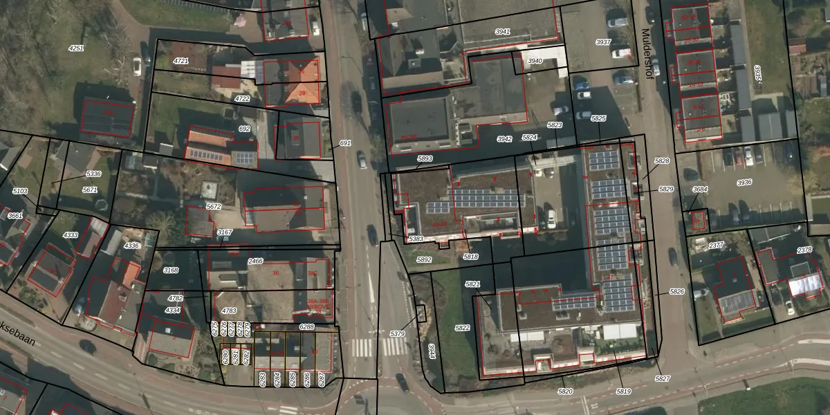Muldershof 57 is gelegen op kadastraal perceel GBK00L5818. Deze kadastrale aanduiding is uniek en wordt gebruikt door het Kadaster om eigendomsrechten en andere zakelijke rechten vast te leggen. Het perceel maakt onderdeel uit van de kadastrale gemeente Groesbeek.