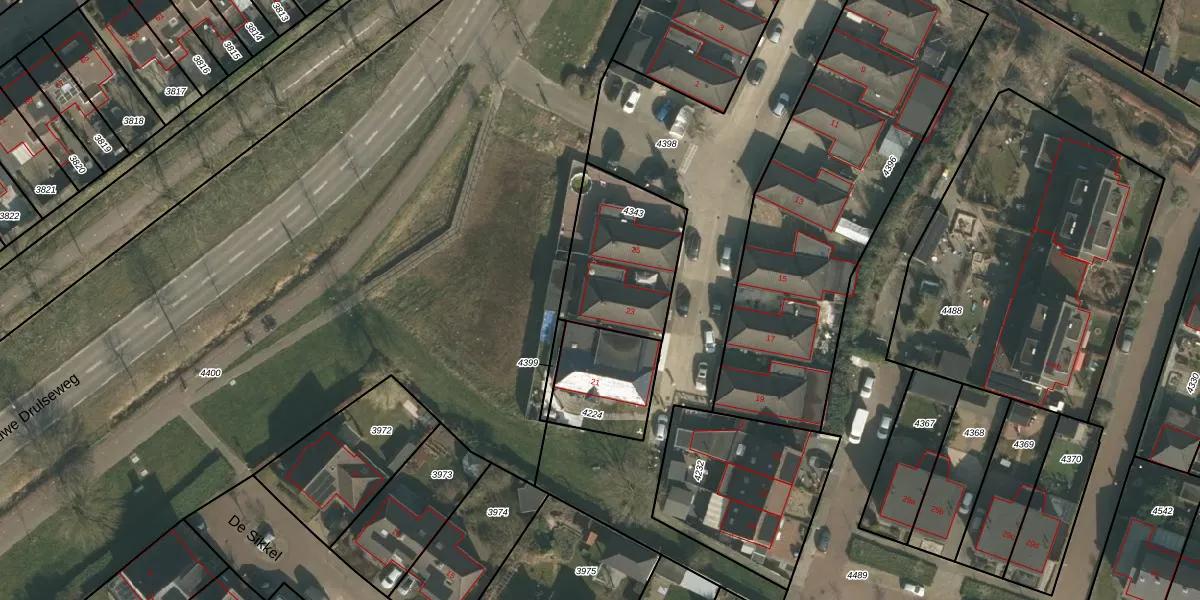 Nieuwe Drulseweg 23 is gelegen op kadastraal perceel GBK00C4343. Deze kadastrale aanduiding is uniek en wordt gebruikt door het Kadaster om eigendomsrechten en andere zakelijke rechten vast te leggen. Het perceel maakt onderdeel uit van de kadastrale gemeente Groesbeek.