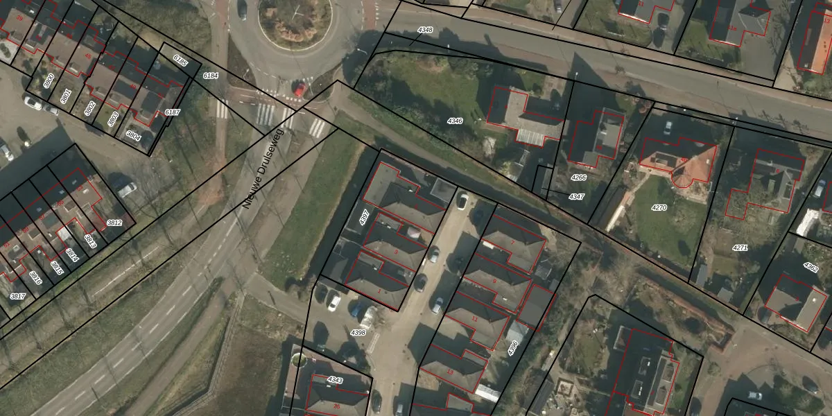 Nieuwe Drulseweg 5 is gelegen op kadastraal perceel GBK00C4397. Deze kadastrale aanduiding is uniek en wordt gebruikt door het Kadaster om eigendomsrechten en andere zakelijke rechten vast te leggen. Het perceel maakt onderdeel uit van de kadastrale gemeente Groesbeek.