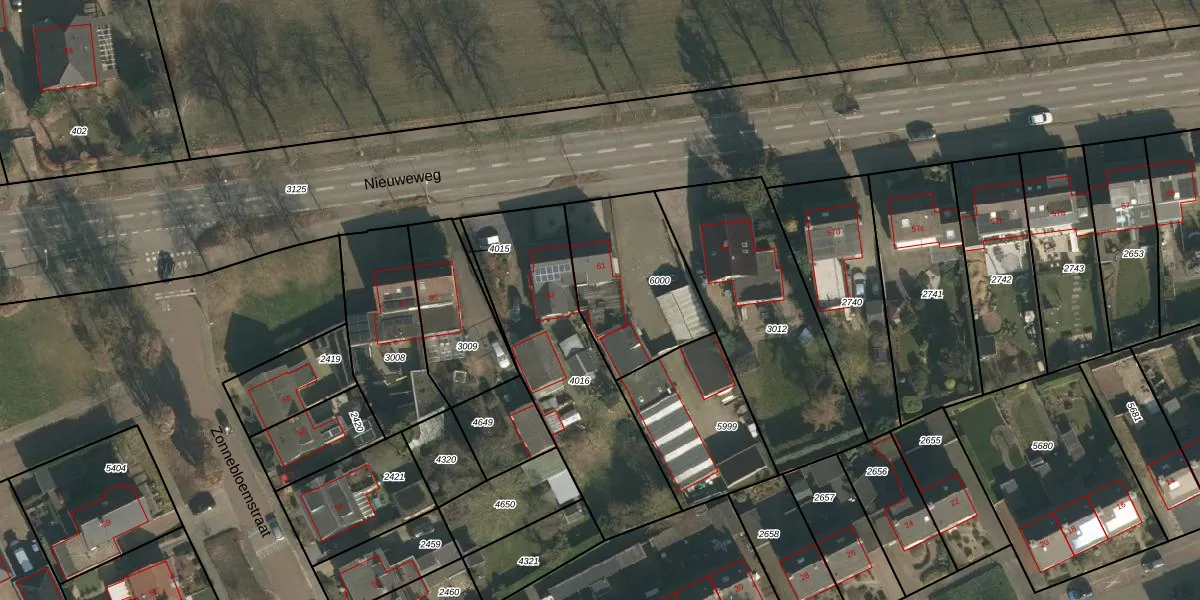 Nieuweweg 61 is gelegen op kadastraal perceel GBK00L6000. Deze kadastrale aanduiding is uniek en wordt gebruikt door het Kadaster om eigendomsrechten en andere zakelijke rechten vast te leggen. Het perceel maakt onderdeel uit van de kadastrale gemeente Groesbeek.