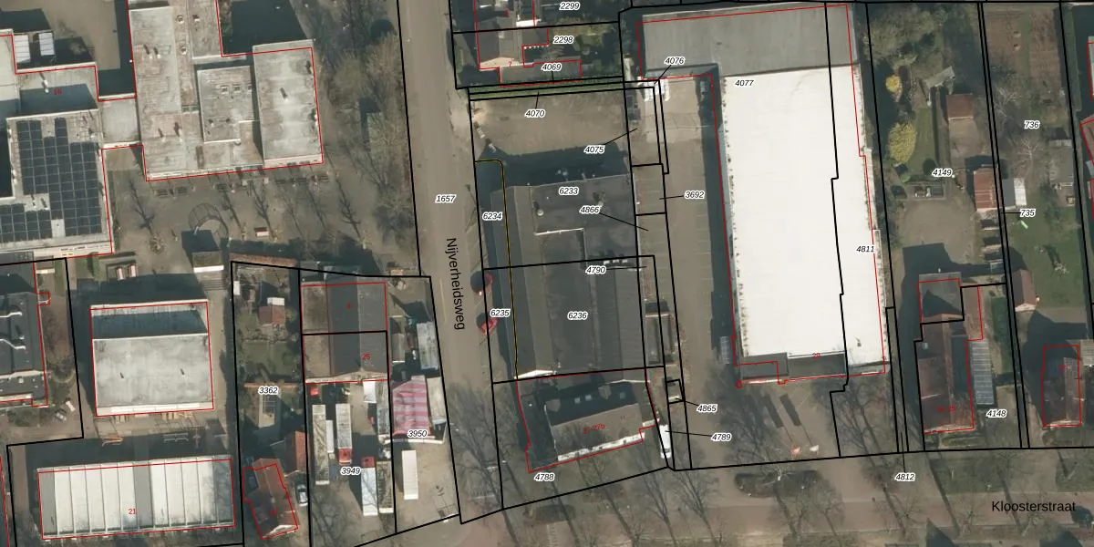 Nijverheidsweg 11 is gelegen op kadastraal perceel GBK00L6236. Deze kadastrale aanduiding is uniek en wordt gebruikt door het Kadaster om eigendomsrechten en andere zakelijke rechten vast te leggen. Het perceel maakt onderdeel uit van de kadastrale gemeente Groesbeek.