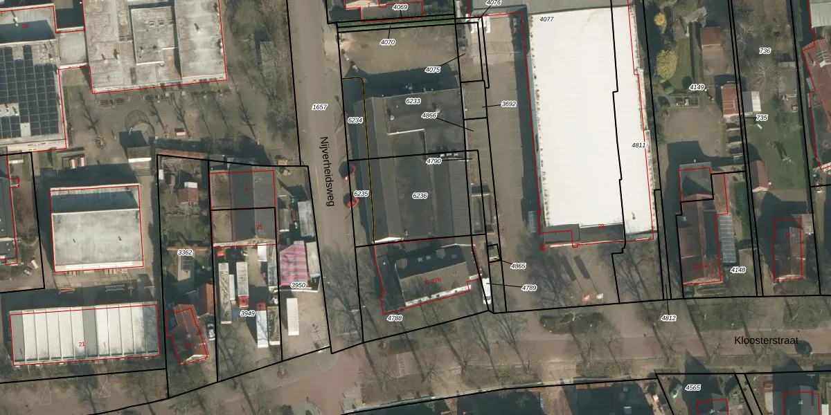 Het perceel waarop Nijverheidsweg 27 staat heeft een oppervlakte van 474 m². Dit is een groot perceel. De perceeloppervlakte wordt geregistreerd door het Kadaster. Gedetailleerde informatie over de maten van dit perceel kunt u vinden in het rapport Kadastrale kaart met maatvoering van Nijverheidsweg 27.