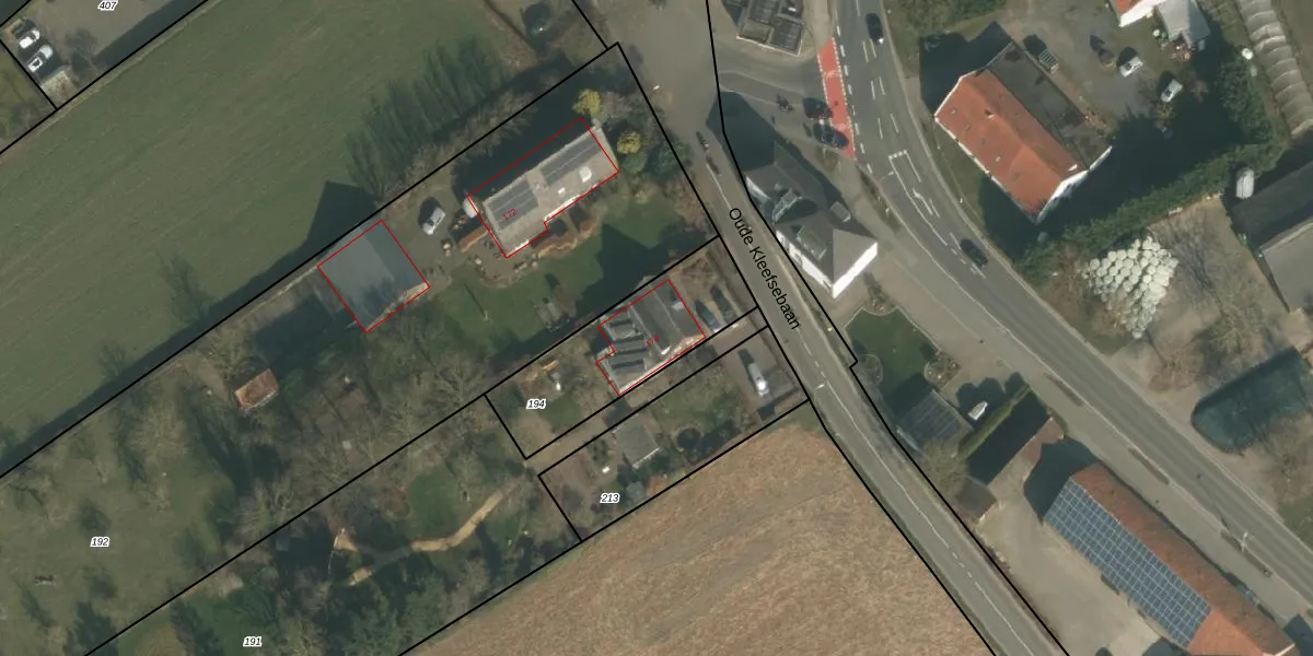 Het perceel waarop Oude Kleefsebaan 174 staat heeft een oppervlakte van 515 m². Dit is een groot perceel. De perceeloppervlakte wordt geregistreerd door het Kadaster. Gedetailleerde informatie over de maten van dit perceel kunt u vinden in het rapport Kadastrale kaart met maatvoering van Oude Kleefsebaan 174.