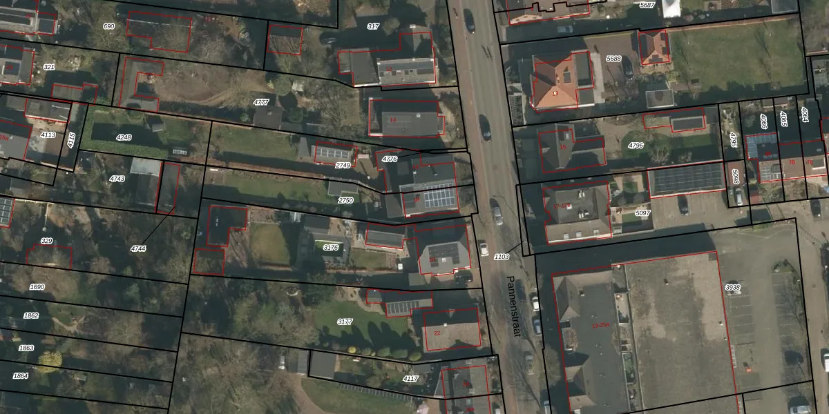 Het perceel waarop Pannenstraat 18 staat heeft een oppervlakte van 524 m². Dit is een groot perceel. De perceeloppervlakte wordt geregistreerd door het Kadaster. Gedetailleerde informatie over de maten van dit perceel kunt u vinden in het rapport Kadastrale kaart met maatvoering van Pannenstraat 18.