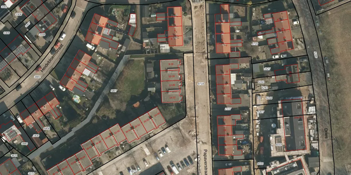 Papaverstraat 16 is gelegen op kadastraal perceel GBK00L5807. Deze kadastrale aanduiding is uniek en wordt gebruikt door het Kadaster om eigendomsrechten en andere zakelijke rechten vast te leggen. Het perceel maakt onderdeel uit van de kadastrale gemeente Groesbeek.