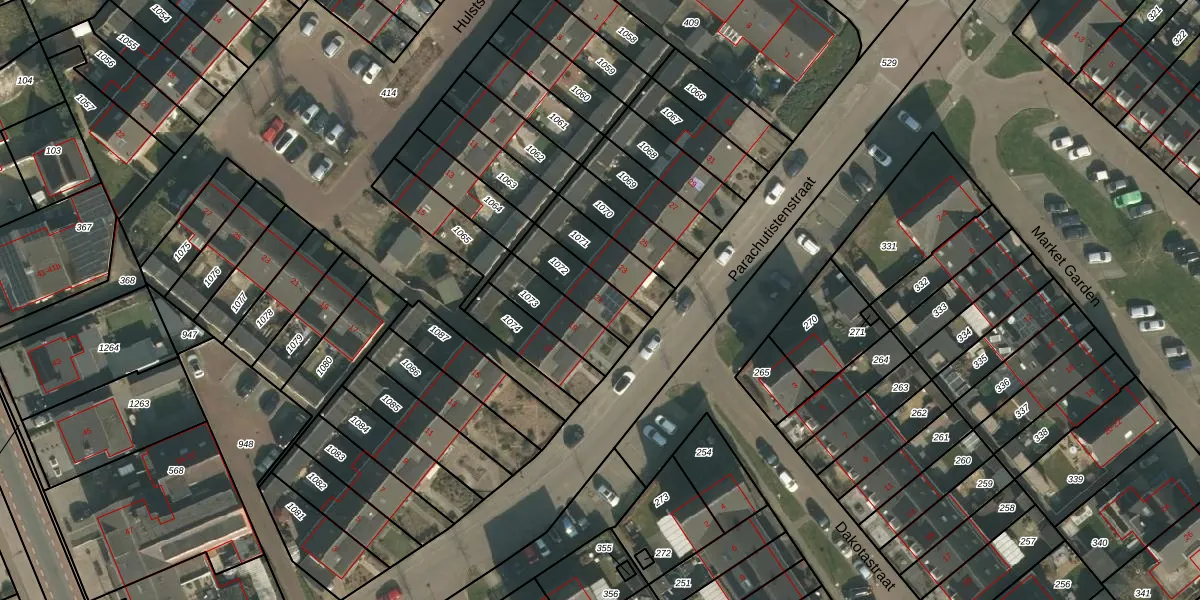 Het perceel waarop Parachutistenstraat 21 staat heeft een oppervlakte van 156 m². Dit is een middelgroot perceel. De perceeloppervlakte wordt geregistreerd door het Kadaster. Gedetailleerde informatie over de maten van dit perceel kunt u vinden in het rapport Kadastrale kaart met maatvoering van Parachutistenstraat 21.