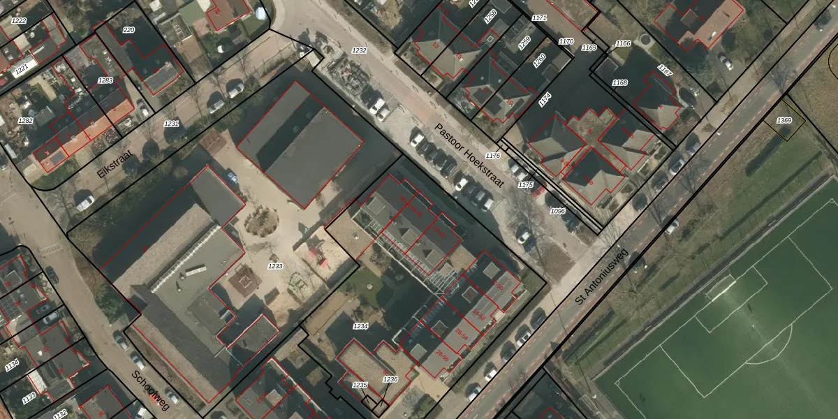 Pastoor Hoekstraat 18 is gelegen op kadastraal perceel GBK00M1234. Deze kadastrale aanduiding is uniek en wordt gebruikt door het Kadaster om eigendomsrechten en andere zakelijke rechten vast te leggen. Het perceel maakt onderdeel uit van de kadastrale gemeente Groesbeek.