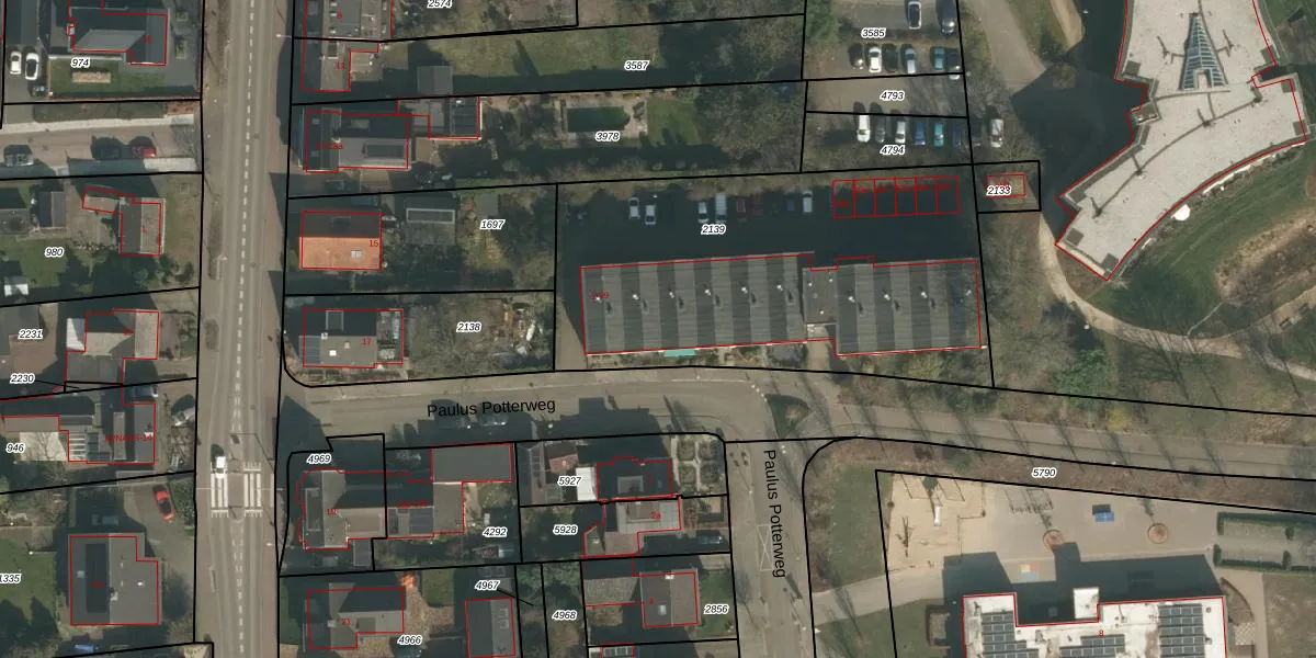 Het perceel waarop Paulus Potterweg 47 staat heeft een oppervlakte van 1970 m². Dit is een zeer groot perceel. De perceeloppervlakte wordt geregistreerd door het Kadaster. Gedetailleerde informatie over de maten van dit perceel kunt u vinden in het rapport Kadastrale kaart met maatvoering van Paulus Potterweg 47.