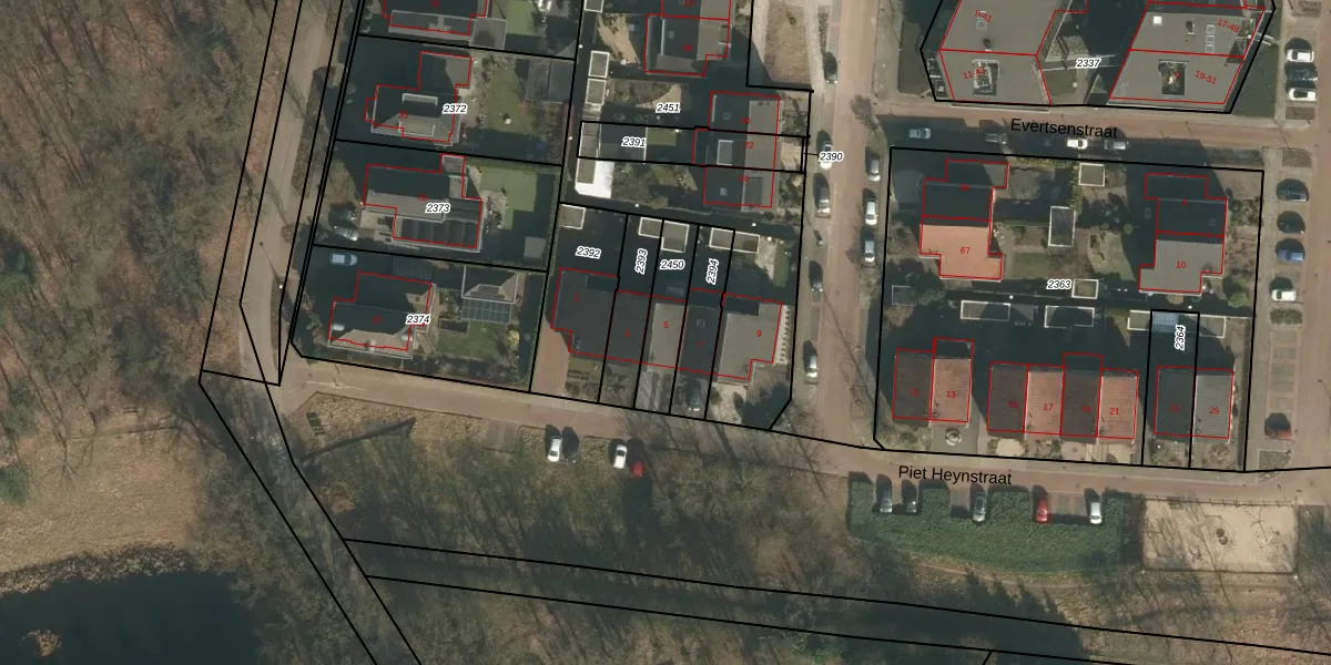 Piet Heynstraat 5 is gelegen op kadastraal perceel GBK00E2450. Deze kadastrale aanduiding is uniek en wordt gebruikt door het Kadaster om eigendomsrechten en andere zakelijke rechten vast te leggen. Het perceel maakt onderdeel uit van de kadastrale gemeente Groesbeek.