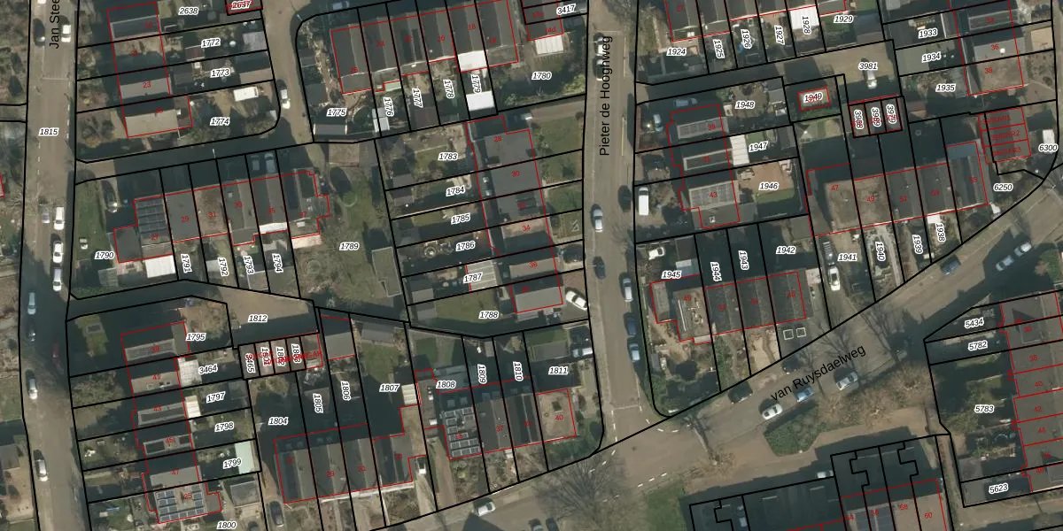Het perceel waarop Pieter de Hooghweg 36 staat heeft een oppervlakte van 189 m². Dit is een middelgroot perceel. De perceeloppervlakte wordt geregistreerd door het Kadaster. Gedetailleerde informatie over de maten van dit perceel kunt u vinden in het rapport Kadastrale kaart met maatvoering van Pieter de Hooghweg 36.