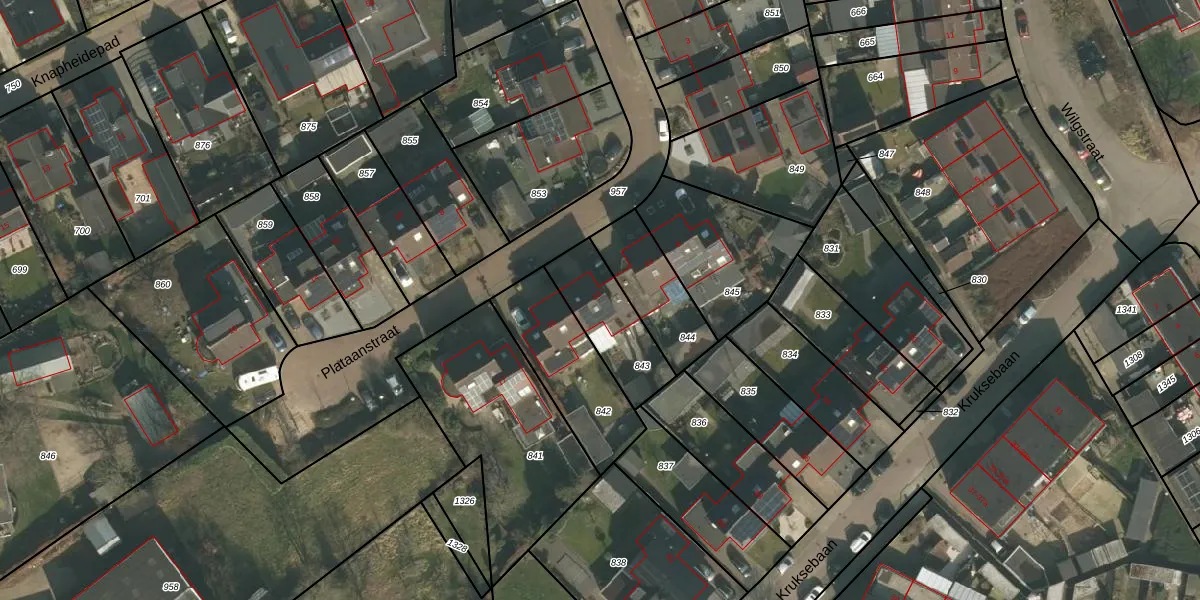 Plataanstraat 13 is gelegen op kadastraal perceel GBK00M843. Deze kadastrale aanduiding is uniek en wordt gebruikt door het Kadaster om eigendomsrechten en andere zakelijke rechten vast te leggen. Het perceel maakt onderdeel uit van de kadastrale gemeente Groesbeek.