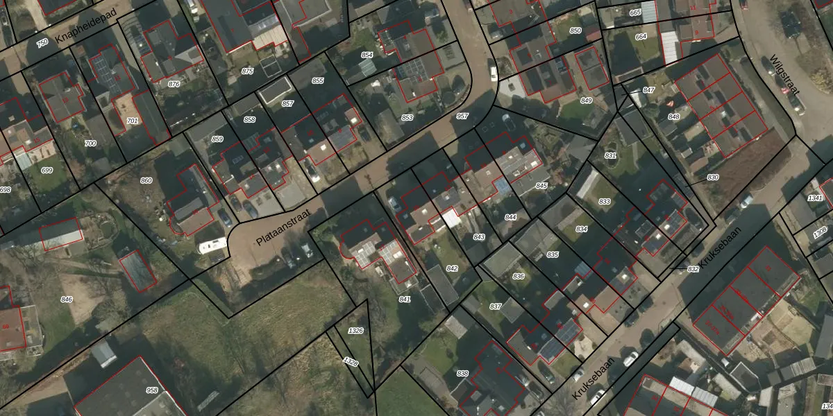 Plataanstraat 15 is gelegen op kadastraal perceel GBK00M842. Deze kadastrale aanduiding is uniek en wordt gebruikt door het Kadaster om eigendomsrechten en andere zakelijke rechten vast te leggen. Het perceel maakt onderdeel uit van de kadastrale gemeente Groesbeek.
