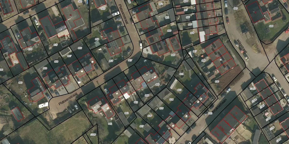 Plataanstraat 9 is gelegen op kadastraal perceel GBK00M845. Deze kadastrale aanduiding is uniek en wordt gebruikt door het Kadaster om eigendomsrechten en andere zakelijke rechten vast te leggen. Het perceel maakt onderdeel uit van de kadastrale gemeente Groesbeek.