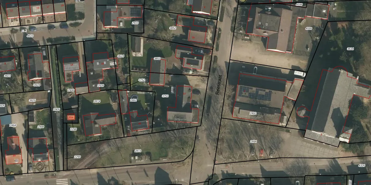 Het perceel waarop Reestraat 1 staat heeft een oppervlakte van 938 m². Dit is een groot perceel. De perceeloppervlakte wordt geregistreerd door het Kadaster. Gedetailleerde informatie over de maten van dit perceel kunt u vinden in het rapport Kadastrale kaart met maatvoering van Reestraat 1.