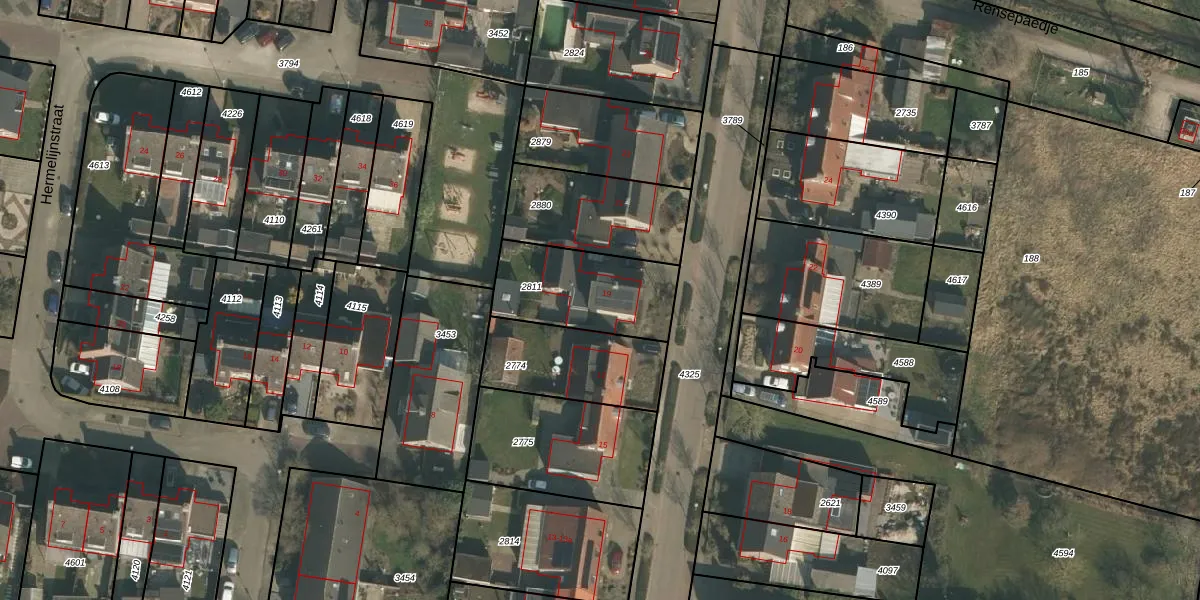 Het perceel waarop Reestraat 19 staat heeft een oppervlakte van 389 m². Dit is een groot perceel. De perceeloppervlakte wordt geregistreerd door het Kadaster. Gedetailleerde informatie over de maten van dit perceel kunt u vinden in het rapport Kadastrale kaart met maatvoering van Reestraat 19.