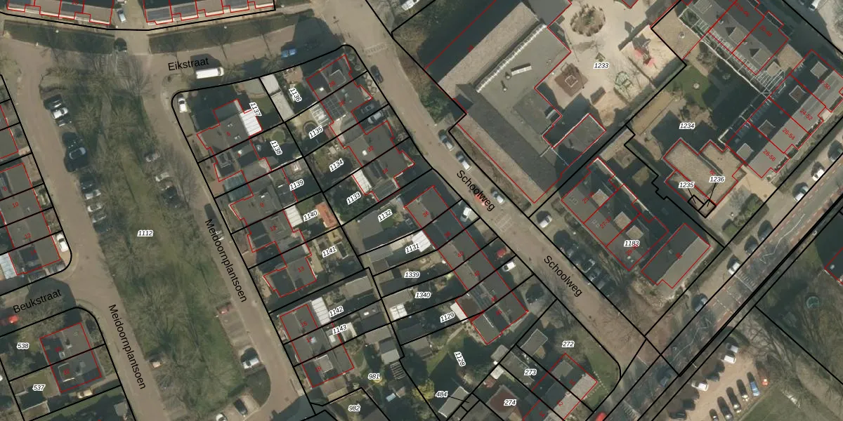 Het perceel waarop Schoolweg 36 staat heeft een oppervlakte van 266 m². Dit is een middelgroot perceel. De perceeloppervlakte wordt geregistreerd door het Kadaster. Gedetailleerde informatie over de maten van dit perceel kunt u vinden in het rapport Kadastrale kaart met maatvoering van Schoolweg 36.