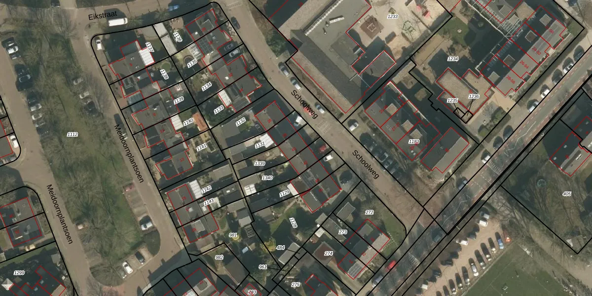 Het perceel waarop Schoolweg 40 staat heeft een oppervlakte van 181 m². Dit is een middelgroot perceel. De perceeloppervlakte wordt geregistreerd door het Kadaster. Gedetailleerde informatie over de maten van dit perceel kunt u vinden in het rapport Kadastrale kaart met maatvoering van Schoolweg 40.