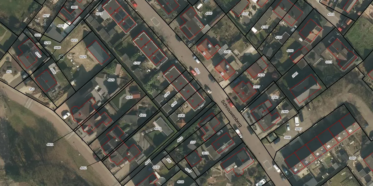 Het perceel waarop Schrouwenberg 39 staat heeft een oppervlakte van 155 m². Dit is een middelgroot perceel. De perceeloppervlakte wordt geregistreerd door het Kadaster. Gedetailleerde informatie over de maten van dit perceel kunt u vinden in het rapport Kadastrale kaart met maatvoering van Schrouwenberg 39.