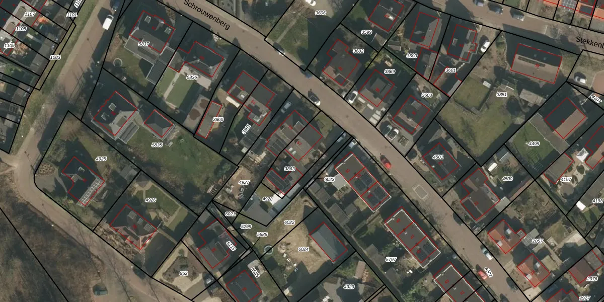 Schrouwenberg 57 is gelegen op kadastraal perceel GBK00L3863. Deze kadastrale aanduiding is uniek en wordt gebruikt door het Kadaster om eigendomsrechten en andere zakelijke rechten vast te leggen. Het perceel maakt onderdeel uit van de kadastrale gemeente Groesbeek.