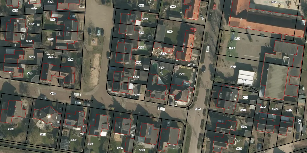 Tamboerstraat 8 is gelegen op kadastraal perceel GBK00C3888. Deze kadastrale aanduiding is uniek en wordt gebruikt door het Kadaster om eigendomsrechten en andere zakelijke rechten vast te leggen. Het perceel maakt onderdeel uit van de kadastrale gemeente Groesbeek.