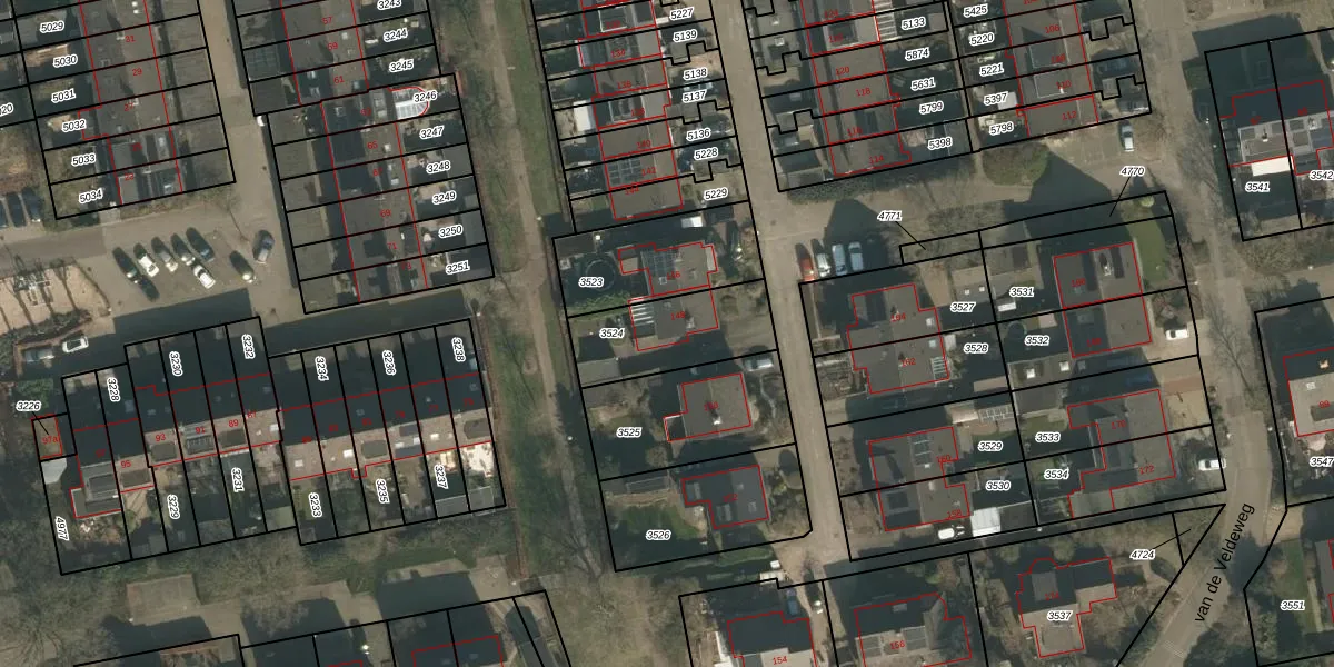 van de Veldeweg 148 is gelegen op kadastraal perceel GBK00L3524. Deze kadastrale aanduiding is uniek en wordt gebruikt door het Kadaster om eigendomsrechten en andere zakelijke rechten vast te leggen. Het perceel maakt onderdeel uit van de kadastrale gemeente Groesbeek.