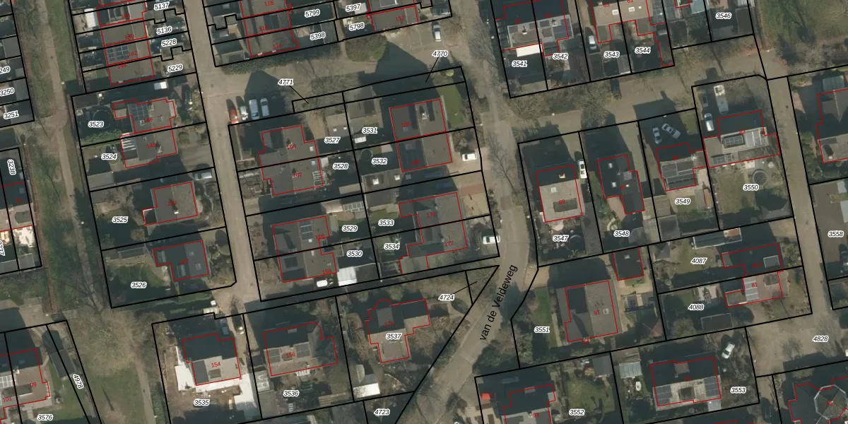 van de Veldeweg 170 is gelegen op kadastraal perceel GBK00L3533. Deze kadastrale aanduiding is uniek en wordt gebruikt door het Kadaster om eigendomsrechten en andere zakelijke rechten vast te leggen. Het perceel maakt onderdeel uit van de kadastrale gemeente Groesbeek.