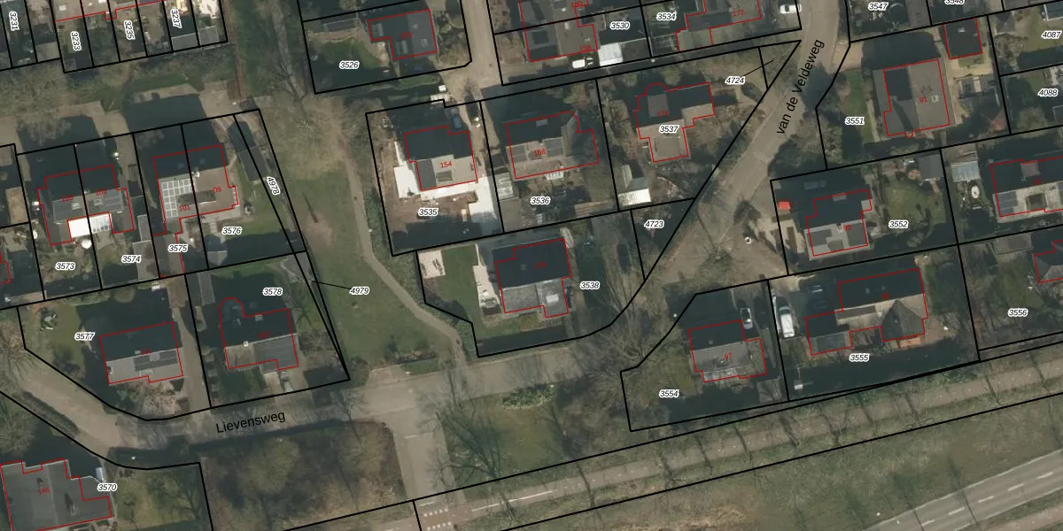 van de Veldeweg 176 is gelegen op kadastraal perceel GBK00L3538. Deze kadastrale aanduiding is uniek en wordt gebruikt door het Kadaster om eigendomsrechten en andere zakelijke rechten vast te leggen. Het perceel maakt onderdeel uit van de kadastrale gemeente Groesbeek.