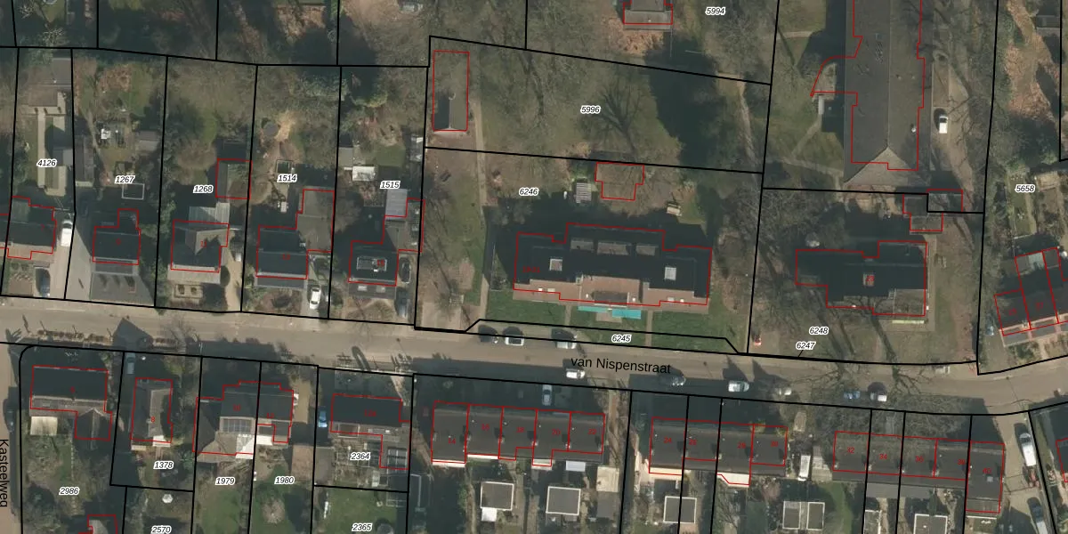 van Nispenstraat 19 is gelegen op kadastraal perceel GBK00L6246. Deze kadastrale aanduiding is uniek en wordt gebruikt door het Kadaster om eigendomsrechten en andere zakelijke rechten vast te leggen. Het perceel maakt onderdeel uit van de kadastrale gemeente Groesbeek.