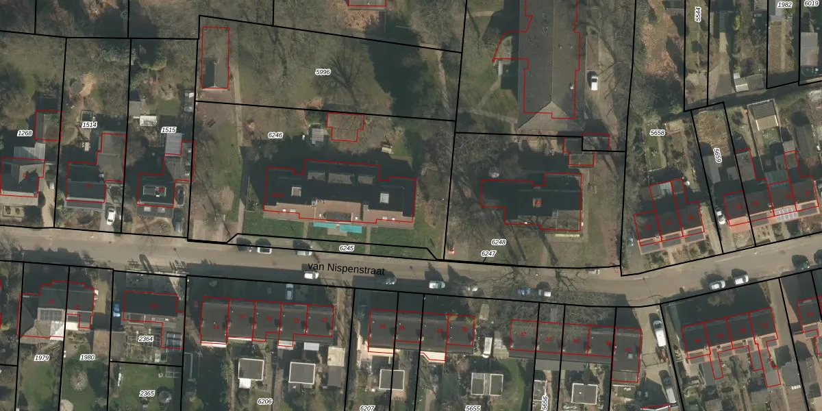 van Nispenstraat 21 is gelegen op kadastraal perceel GBK00L6246. Deze kadastrale aanduiding is uniek en wordt gebruikt door het Kadaster om eigendomsrechten en andere zakelijke rechten vast te leggen. Het perceel maakt onderdeel uit van de kadastrale gemeente Groesbeek.