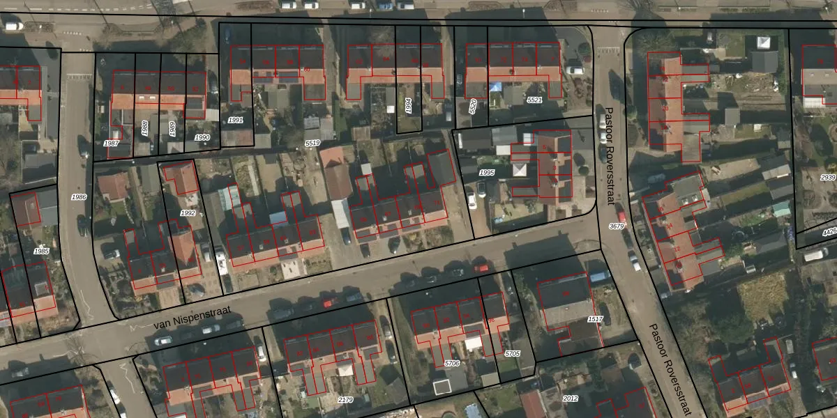 Het perceel waarop van Nispenstraat 69 staat heeft een oppervlakte van 3739 m². Dit is een zeer groot perceel. De perceeloppervlakte wordt geregistreerd door het Kadaster. Gedetailleerde informatie over de maten van dit perceel kunt u vinden in het rapport Kadastrale kaart met maatvoering van van Nispenstraat 69.