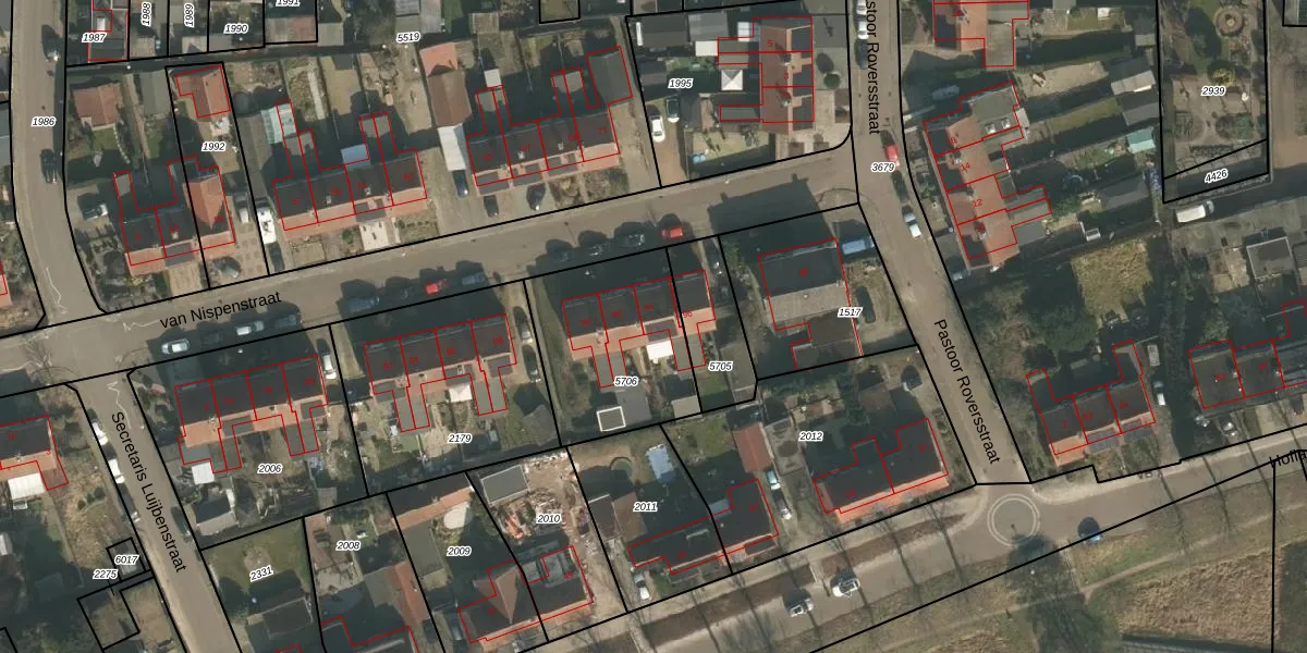 van Nispenstraat 94 is gelegen op kadastraal perceel GBK00L5706. Deze kadastrale aanduiding is uniek en wordt gebruikt door het Kadaster om eigendomsrechten en andere zakelijke rechten vast te leggen. Het perceel maakt onderdeel uit van de kadastrale gemeente Groesbeek.
