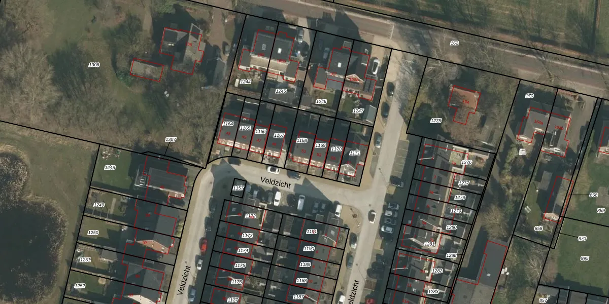 Veldzicht 51 is gelegen op kadastraal perceel GBK00P1168. Deze kadastrale aanduiding is uniek en wordt gebruikt door het Kadaster om eigendomsrechten en andere zakelijke rechten vast te leggen. Het perceel maakt onderdeel uit van de kadastrale gemeente Groesbeek.