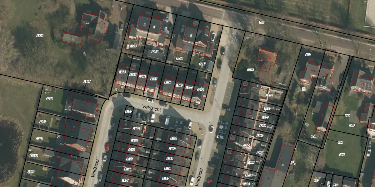 Veldzicht 55 is gelegen op kadastraal perceel GBK00P1170. Deze kadastrale aanduiding is uniek en wordt gebruikt door het Kadaster om eigendomsrechten en andere zakelijke rechten vast te leggen. Het perceel maakt onderdeel uit van de kadastrale gemeente Groesbeek.