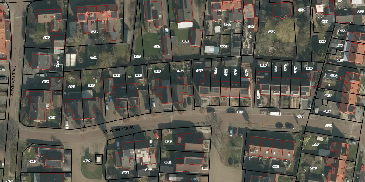 Vendelierstraat 15 is gelegen op kadastraal perceel GBK00C3824. Deze kadastrale aanduiding is uniek en wordt gebruikt door het Kadaster om eigendomsrechten en andere zakelijke rechten vast te leggen. Het perceel maakt onderdeel uit van de kadastrale gemeente Groesbeek.