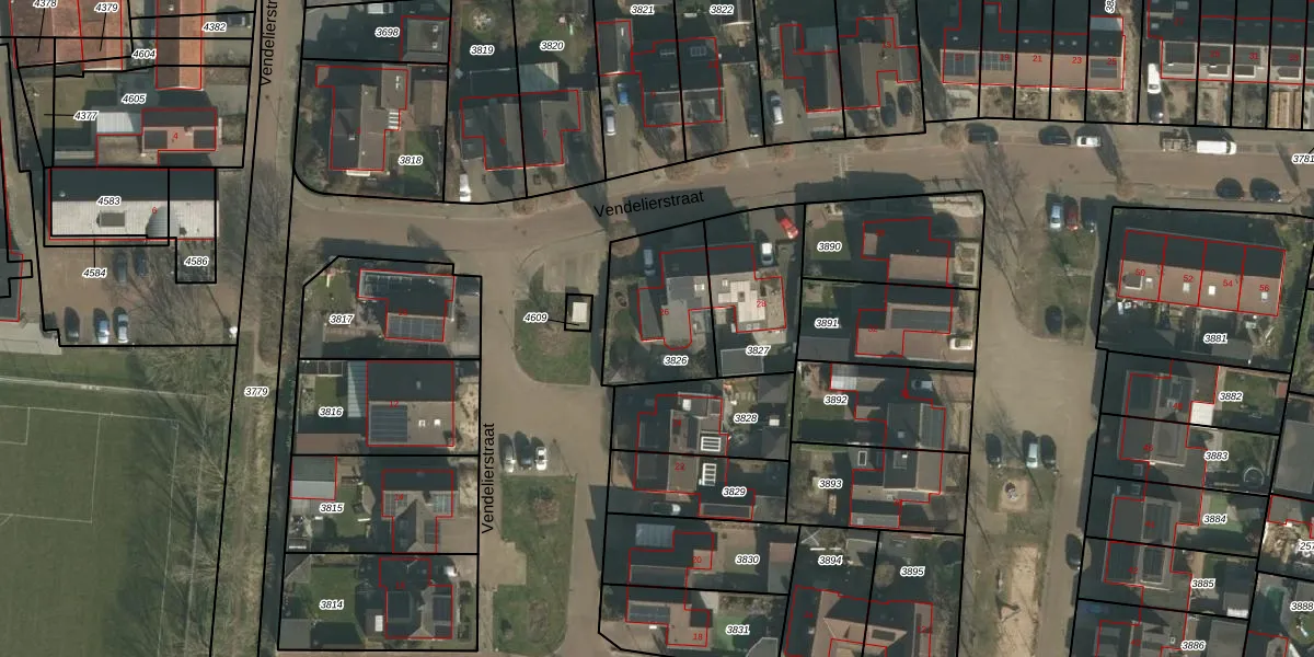 Vendelierstraat 26 is gelegen op kadastraal perceel GBK00C3826. Deze kadastrale aanduiding is uniek en wordt gebruikt door het Kadaster om eigendomsrechten en andere zakelijke rechten vast te leggen. Het perceel maakt onderdeel uit van de kadastrale gemeente Groesbeek.