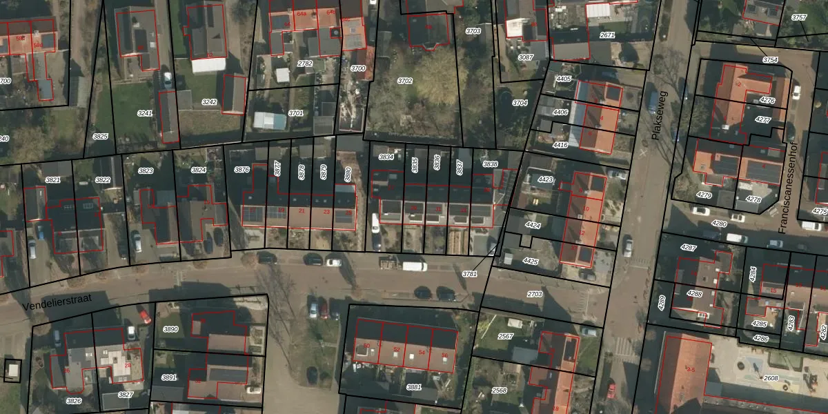 Vendelierstraat 29 is gelegen op kadastraal perceel GBK00C3835. Deze kadastrale aanduiding is uniek en wordt gebruikt door het Kadaster om eigendomsrechten en andere zakelijke rechten vast te leggen. Het perceel maakt onderdeel uit van de kadastrale gemeente Groesbeek.